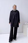 Ürün Özellikleri : Çıtçıt Detay Bol Paça Kapüşonlu Kadın Tesettür Takım