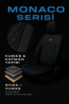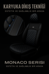 Monaco Serisi, Citroen C4 kullanıcıları için geliştirildi. Özel dokulu Eviza yüzey uzun sürüşlerde serin tutar yan deri detaylar kabine premium bir görünüm katar. Özel kalıbı sayesinde araç içi fonksiyonellik korunur. Ticari 2+1 arka bank yapısına eksiksiz oturur. Airbag uyumlu dikiş teknolojisi güvenli sürüşe destek olur. Montaj kancalarıyla hızlı ve iz bırakmayan kurulum yapılır.