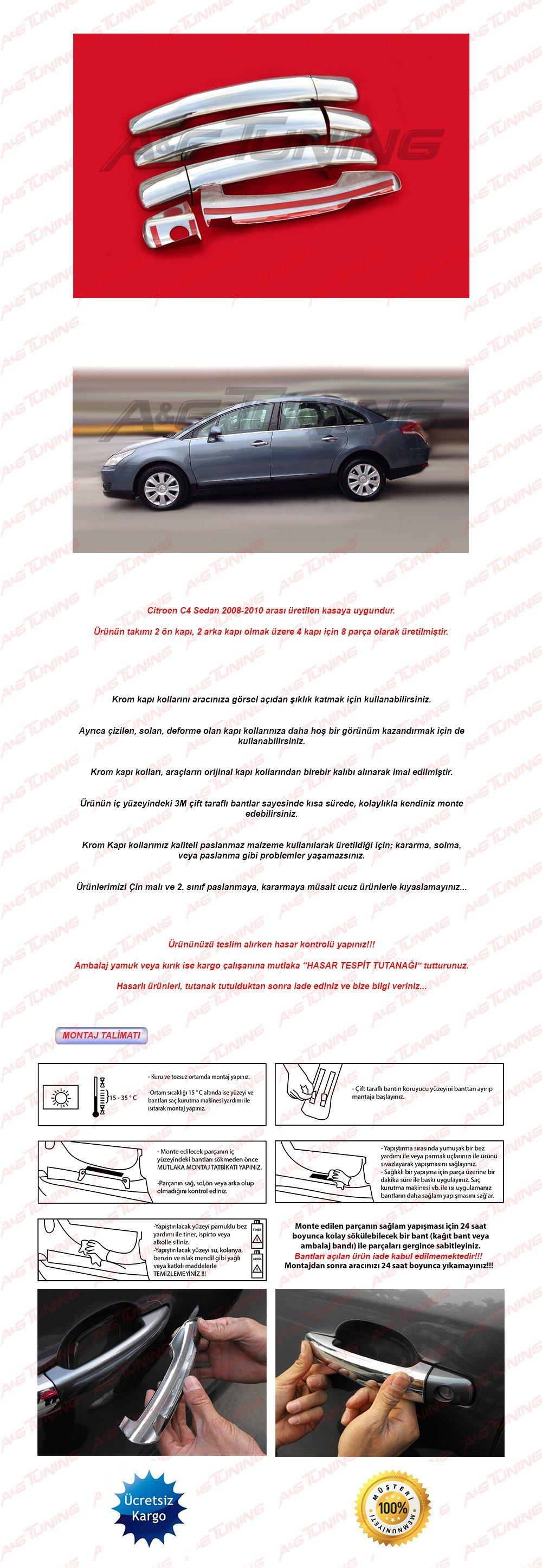A&G Tuning Citroen C4 Sedan Krom Kapı Kolu 2008-2010 4 Kapı Paslanmaz Çelik