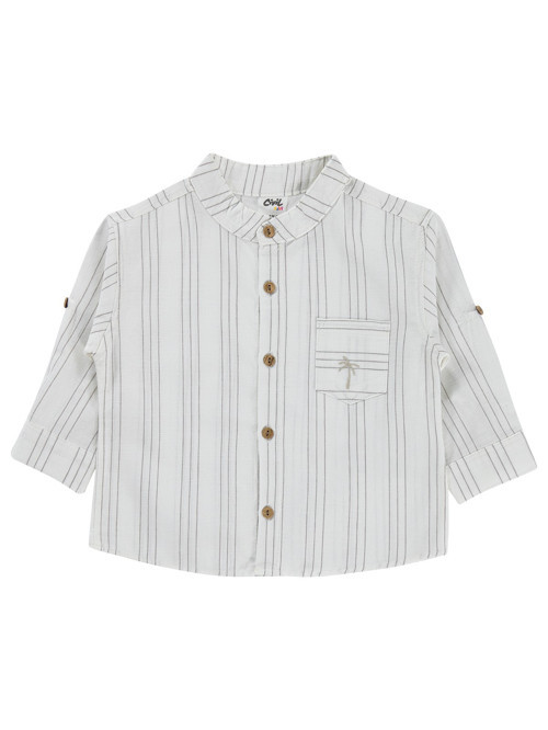 Civil Baby Çizgili 6-18 Ay Gömlek - Ekru 9-12 Ay