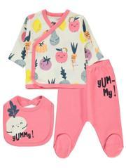 Civil Baby Meyve ve Sebze Empirme Baskılı Zıbın Takımları - Pembe0-1 Ay