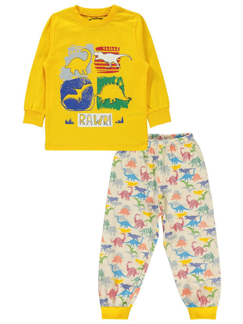 Civil Boys Renkli Dinazor Emp. Rawr Baskılı 2-5 Yaş Pijama Takımı - Hardal 5-6 Yaş