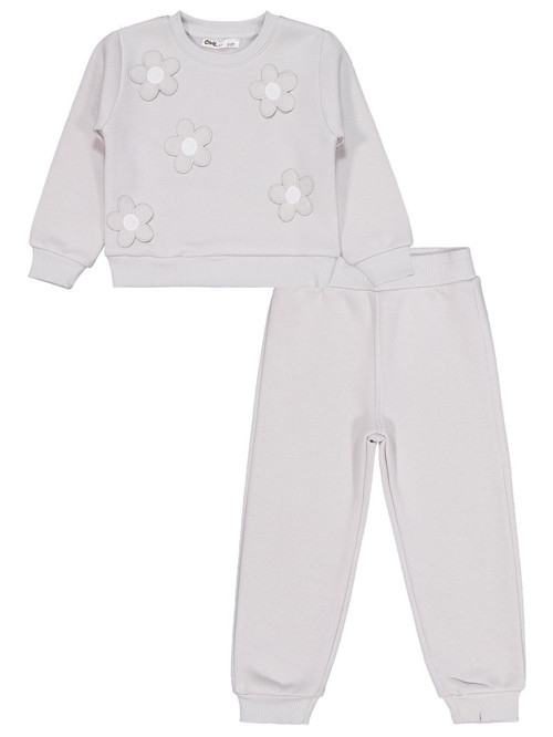Civil Girls Çiçek Nakışlı 2-5 Yaş Eşofman Takımı - Gri 5-6 Yaş