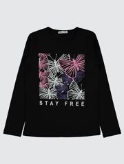 Stay Free Kelebek Baskılı 10-13 Yaş Sweatshirt - Siyah10-11 Yaş