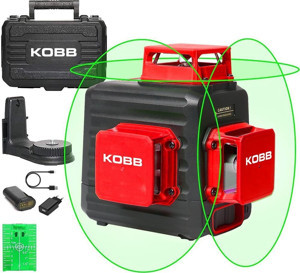 KOBB KBL34G 40 Metre Profesyonel Li-ion Şarjlı 3X360⁰ Otomatik Hizalamalı Yeşil Çapraz Çizgi Lazer Distomat