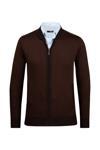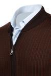 Çizgi Triko Erkek Fermuarlı Cep Detaylı Desenli Kol ve Bel Lastikli Çelik Örgü Ceket 5004K Kahverengi