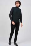 DeepSEA Erkek Siyah Çizgi Desenli Tüylenme Yapmayan Yarım Balıkçı Yaka Triko Kazak 2505501 - Image 1