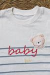 Sevimli ayıcık desenleri ve “hi” nakış detaylı çizgili üst ile yumuşacık pamuklu pantolondan oluşan bu 2’li takım, miniklerin hem rahat hem de tatlı görünmesini sağlar. Günlük kullanım için ideal olan bu kombin, bebeğinizin konforunu ön planda tutar.