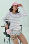 Çizgili Bluz Lila - 26523