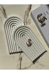 Çizgili Dekoratif Taş Tozu Sunum Tabağı | Casa di Duck