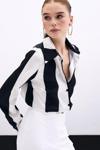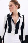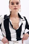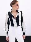 Ön düğmeli, manşetli uzun kol, çizgili düz gömlek.