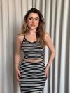 Şıklık ve rahatlığı bir arada sunan çizgili etek crop takım, gardırobunuzun vazgeçilmezi olmaya aday!