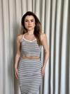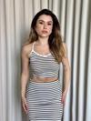 Şıklık ve rahatlığı bir arada sunan çizgili etek crop takım, gardırobunuzun vazgeçilmezi olmaya aday!