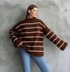 BİÇOMİ Çizgili ispanyol kol triko boğazlı kahve beyaz elf - Image 1