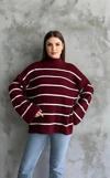Çizgili ispanyol kol triko boğazlı kazak bordo elf