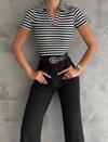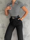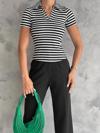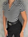 KAZAX çizgili kaşkorse v yaka tişört siyahbeyaz, gardırobunuza şıklık katacak bir parça.