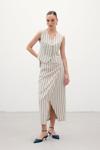 Sateen markasının şıklığını ve zarafetini yansıtan bu keten etek, gardırobunuza sofistike bir dokunuş katıyor.
