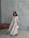ÇİZGİLİ KETEN HAKİM YAKA DÜĞMELİ SALAŞ ELBİSE - Kahverengi