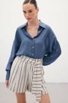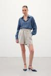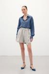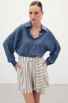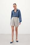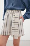 Çizgili Keten Şort - Lacivert