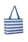 Yaz sezonuna özel tasarlanmış, plajda şıklığınızı tamamlayacak mavi beyaz çizgili file çanta.