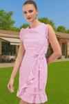 Yüksek kaliteli %75 Polyester, %25 Pamuk karışımı poplin kumaş, nefes alabilirliği ve dayanıklılığı ile öne çıkar. Büzgülü/ fırfırlı kolları ve bisiklet yakası, elbiseye romantik bir hava katar. Astarsız tasarımıyla yaz sıcağında serin kalmanızı sağlar. Kolay ütüleme özelliği sayesinde her zaman kusursuz görünmenizi garanti eder. Makinede yıkanabilir olması da pratik kullanım sağlar.