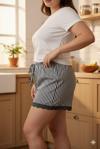 Çizgili Penye Kadın Ev Şortu Bacak Dantel Detaylı Ev Giyim Siyah