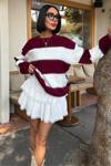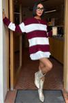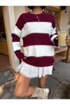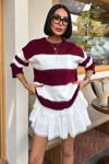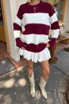 - Rahat ve şık bir görünüm sunan bordo çizgili kazak, günlük kullanım için idealdir.; - Standart bedeni ile her vücut tipine uyum sağlayarak konforlu bir deneyim sunar.; - Örme kumaşı sayesinde yumuşak dokusuyla cildinize nazikçe dokunur ve gün boyu rahatlık hissi verir.; - Regular kalıbı ile vücudu saran ancak sıkmayan bir yapıya sahiptir; hareket özgürlüğünüzü kısıtlamaz.; - Düz deseniyle kolayca kombinlenebilir ve farklı aksesuarlarla zenginleştirilebilir.; - Uzun kollu tasarımı soğuk havalarda ekstra koruma sağlarken, casual ortamlarda da stilinizi tamamlar.; - Pamuklu materyali tercih edilerek nefes alabilirlik özelliği ön plana çıkarılırken, dayanıklılığından ödün vermez.; - Her mevsime uygun olarak tasarlanmıştır; yılın her döneminde gardırobunuzda yerini alır.; - Casual giyimin vazgeçilmez parçası olan bu kazak, günlük şıklığınızı artırırken aynı zamanda pratikliği de elden bırakmaz.