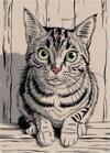 Çizim Kedi Portresi Desenli Mdf Tablo
