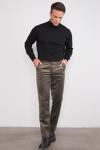 Rahat kesimiyle günlük kullanım için ideal, haki renkteki kadife pantolon.