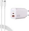 Bu güçlü şarj seti, USB-C ve USB-A çıkışlarının bir arada sunulması sayesinde aynı anda iki cihazı birden şarj etme imkânı tanır. PD (Power Delivery) ve QC 3.0 (Quick Charge) teknolojileri ile donatılan CL45, hem Android hem iOS cihazlarda en yüksek şarj hızını destekler. Kutu içeriğinde yer alan Type-C to Lightning kablo, özellikle iPhone, iPad ve AirPods gibi Apple cihazlarınızla tam uyum sağlar.