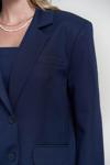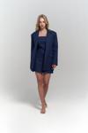 Astaarlı, düşük kollu, vatkalı, uzun kollu, önde cepli, göğüste biyeli yalancı cepli ve katlı yakalı blazer ceket.