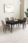 Clara Siyah Mermer Desen 80x132 Açılabilir Mdf Masa Yemek Odası Takımı,Mutfak Takımı 4 Adet Sandalye