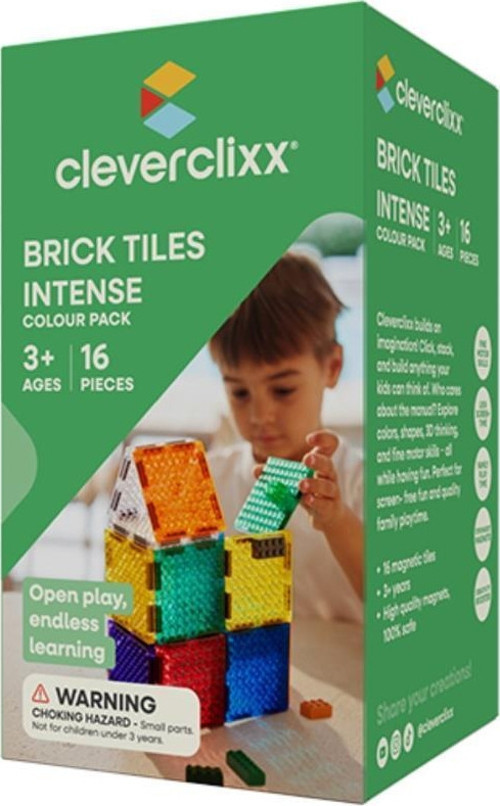 16 parçadan oluşan bu renkli Cleverclixx Brick Tiles Pack Manyetik Bloklar, yaratıcılığı bir adım öteye taşımak için tasarlandı. Manyetik paneller, Cleverclixx setlerinizle mükemmel uyum sağlarken; evdeki LEGO® ve DUPLO® bloklarla da birlikte kullanılabilir. Böylece çocuklar farklı oyun dünyalarını bir araya getirerek daha zengin ve keyifli yapılar oluşturabilir.