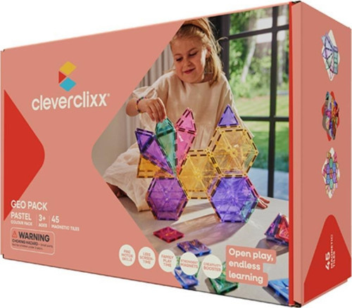 45 parçalık Geo Pack, çocukların geometrik şekilleri tanımasını sağlarken hayal güçlerini özgürce kullanabilecekleri renkli bir oyun alanı sunar. Yumuşak pastel tonlarıyla tasarlanan bu set, mevcut Cleverclixx koleksiyonlarıyla kusursuz şekilde uyum sağlar ve oyun deneyimini zenginleştirir.