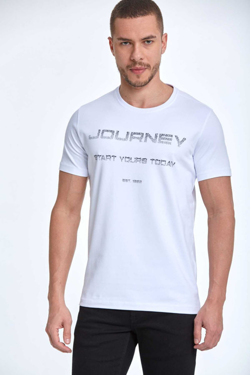 Clipper Baskılı Erkek Tişört Beyaz