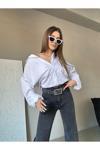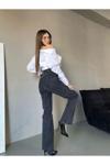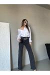 Cms Jeans Kadın Yüksek Bel Kemerli Bel Püskül Paça Püskül Siyah Kar Yıkama Likralı Palazzo Jean Gri 38-28
