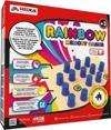 REDKA Rainbow kutusunda 1 adet ahşap zemin, 25 adet renkli plastik bardak ve 7x4 toplam 28 adet renkli ahşap küp bulunur.