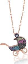 925 ayar gümüş rose renkli doğaltaşlı nazarlı çocuk arabası kolye...