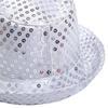 Bu şapka, ister bir gösteride sahneye çıkın ister bir kostüm partisi için giyinin, göz alıcı bir görünüm oluşturmak için mükemmeldir. Yumuşak gümüş payetlerle kaplı şapka, ışıltılı bir etki oluştururuyor.