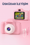 Üsküdar İletişim Çocuk Fotoğraf Makinesi – HD Ekranlı, Şarjlı, Hediye Kablo ve Askı Dahil Hediye Setli Pembe