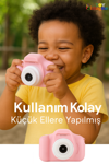 Bu şirin ve dayanıklı mini kamera, küçük eller için özel olarak tasarlandı. Hafif yapısı sayesinde çocuklar kolayca taşıyabilir, fotoğraf ve video çekmenin keyfini çıkarabilir.