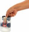 Tekrar kullanılabilir varil ambalajı su haznesi olarak değerlendirin: Hazneyi suyla doldurup aracı içinde çevirmeniz yeterli. Suyun rengi değiştikçe ortaya çıkan süslemeleri keşfedin. Çocuklar araçlarını soğuk suya daldırdığında farklı desenlerin ortaya çıktığı renk değişimi eğlencesini keşfedebilir. Araçlarını ilk haline döndürmek için ılık su kullanabilirler. 2 farklı görünüm için renk değiştirme eğlencesini tekrarlayın.
