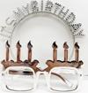 İt's My Birthday Yazılı Taç ve Mum Şekilli Gözlük Seti Gümüş Renk