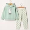 Yumuşacık 3 iplik şardonlu kumaşıyla sıcak tutan, tavşan baskılı kapüşonlu sweatshirt ve dama (ekose) desenli jogger alt ikiliden oluşan konforlu bir takım. yeşil tonundaki modern rengiyle okulda, parkta ve günlük kullanımda hem şık hem rahat bir seçenek sunar. Çocukların hassas cildine uygun pamuk ağırlıklı dokusu ve esnek beli sayesinde gün boyu rahatlık sağlar.