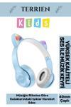 Çocuk Kedi Kulaklı Işıklı Mikrofonlu Uyumlu Kablosuz Bluetooth Kedili Kulaklık