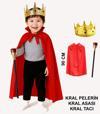 Kral Kostüm Seti ile çocuklar kendini masalların kahramanı gibi hissedecek. Set içerisinde 90 cm uzunluğunda kırmızı kral pelerini, 60 CM altın renkli gösterişli kral tacı ve 40 cm kral asası bulunur.