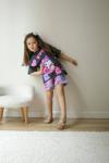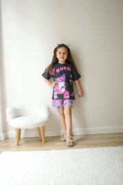 Sevimli ve enerjik tasarımıyla öne çıkan Kuromi baskılı bu ikili takım, miniklerin günlük stiline eğlence katıyor. Rahat kalıbı ve pamuklu kumaşıyla hem evde hem dışarıda kullanım için ideal.Ürün Özellikleri