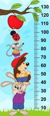 Çocuk Odası Bebek Odası Boy Ölçer Boy Cetveli Sticker Hayvanlar Elma