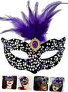 - Mor tüyler ve mor taşlar maskeye lüks ve göz alıcı bir görünüm kazandırır.