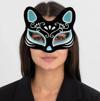 Siyah Renk Üzeri Gümüş Mavi Simli Süet Kaplama Kedi Maskesi ile gizemli ve etkileyici bir görünüm oluşturun ve Kostüm Partisine hazır olun!